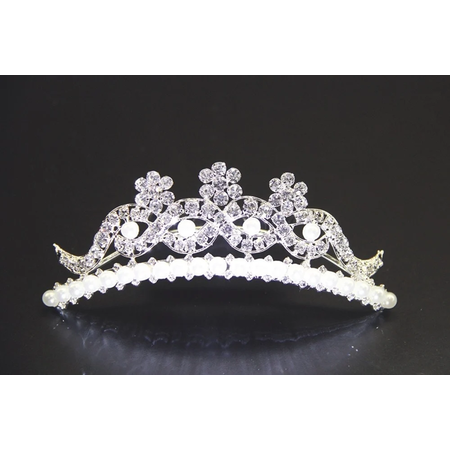 FH2 - Medium Crystal And Pearl Flower Tiara Comb