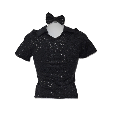 Weissman Black Short Sleeve Sequence Top With Bow Tie