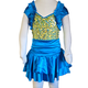 Custom made brite satin dress with blue, green and gold sequence. Front and back lining