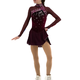 Gorgeous Burgundy velvet dresses with an asymmetrical front design and high neck trimmed with silvery glitter accented by a fan of sparkling crystals. Long mesh sleeves with finger points, a back clip and a slanted overlapping georgette skirt add finesse.