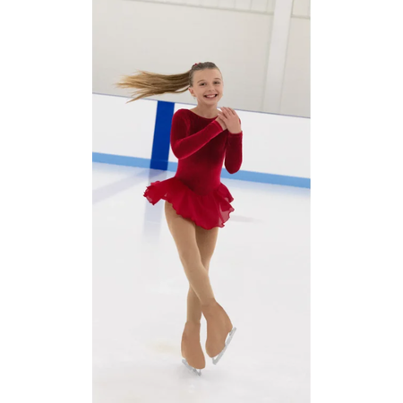 Traditional style skating dress in stretch velvet with a jewel neckline at the front that scoops lower at the back and features a pair of crossed straps Matching classic georgette skirt