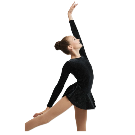 Glitter velvet dress Long sleeves Perfect for the beginners Hair tie included Fiber Content: