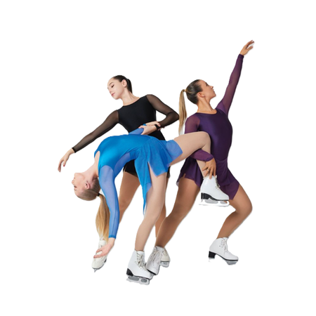 Shiny nylon long sleeve dress Mesh cut and cross straps at back Double asymmetrical mesh skirt Fully lined front Hair tie included Fabric: 80% nylon, 20% elastane • Mesh: 82% nylon, 18% elastane • Lining: 100% nylon
